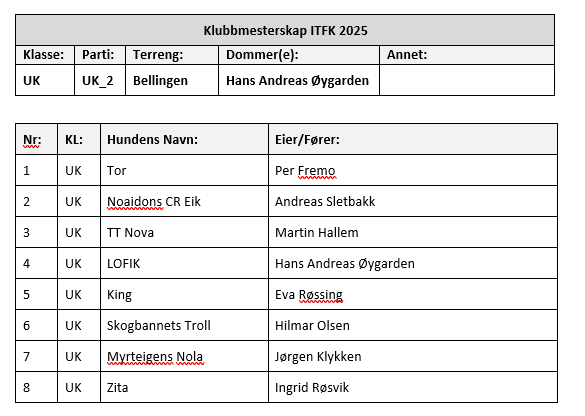 • Klubbmestere ITFK