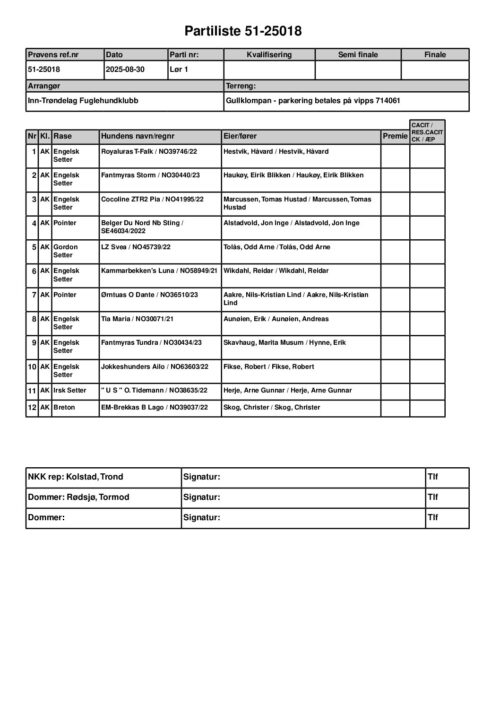 • Skogsfugleprøve – Premieliste