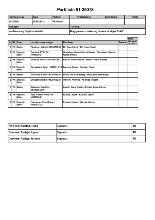 • Skogsfugleprøve – Premieliste