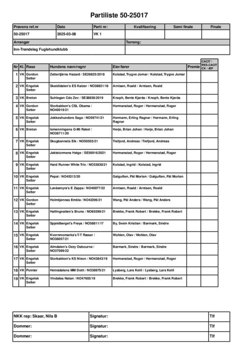 • Skogsfugleprøve – Premieliste